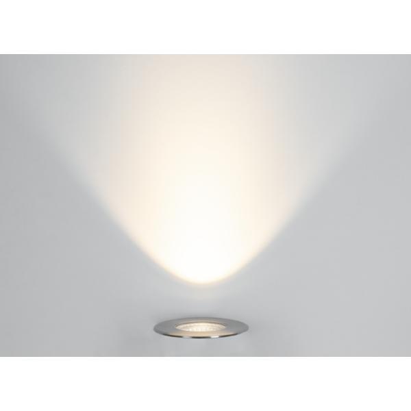LED-Bodeneinbauleuchte, V4A, IP67, schaltbar, edelstahl matt, rund. Einbaumontage, Bodenmontage Ausführung: ohne Fassung, Montageart: Einbaumontage, Montageort: Bodenmontage, Material: Edelstahl V4A / Aluminium / Glas, Schutzart raumseitig: nach DIN EN 60529: IP67, Schutzklasse: (EN 61140) I, Spannung: 230V AC 50Hz, Leistung: 12 W, Anzahl der Leuchtmittel / Fassungen: 1 Stück, Lichtstrom: 1.050 lm, Farbtemperatur: 3.000 K, Abstrahlwinkel: 38°, ohne Betriebsgerät, Art der Dimmung: schaltbar.