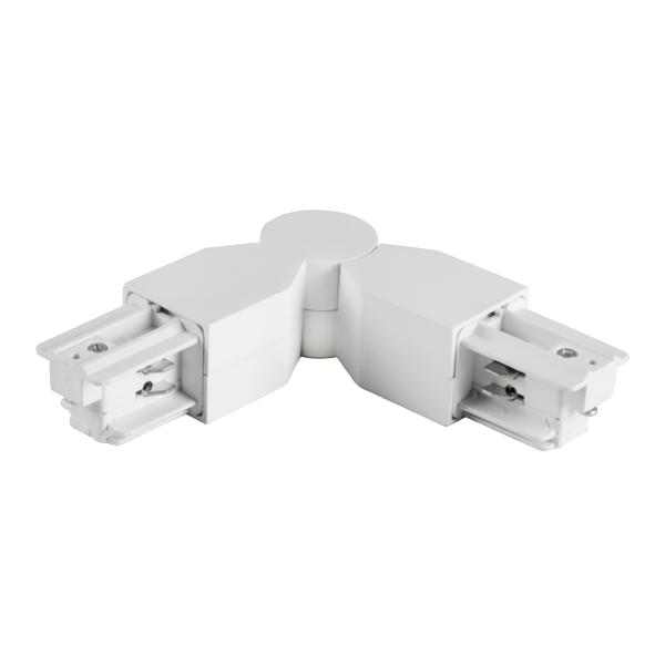 Flexibler Eckverbinder zu Stromschiene 88101-88104, Schutzleiter innen, weiß.