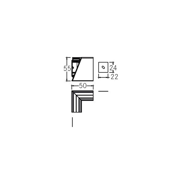 Verbindungsstück 90°, alu eloxiert. Material: Aluminium, Abmessung Profil: L: 50 mm x B: 50 mm x H: 55 mm