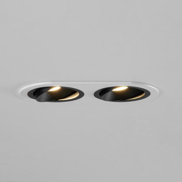Einbaugehäuse, oval, bündig, 2-fach, mit Modulhalterungen vertieft, schwenkbar, ohne LED-Module, außen strukturweiß / innen strukturschwarz, oval. Ausgeführt in kompakter Bauform für werkzeuglose Schnellmontage zum Deckeneinbau. Alle Brumberg MR16-LED-Module sind für die Einbaueinheit M1 bis zur maximal angegebenen Leistung einsetzbar. Die Einbautiefe der Leuchte richtet sich nach den jeweils verwendeten LED-Modulen. Die LED-Module sind im Lieferumfang der Einbaueinheit nicht enthalten. Ausführung: ohne Fassung, Montageart: Einbaumontage, Montageort: Deckenmontage, Material: Aluminium, Schutzart raumseitig: nach DIN EN 60529: IP20, Schutzklasse: (EN 61140) III, Leistung: 13 W, Anzahl der Leuchtmittel / Fassungen: 2 Stück, Verstellbarkeit: schwenkbar, ohne Betriebsgerät, Dimmbar: Abhängig vom Betriebsgerät, Art der Dimmung: Abhängig vom Betriebsgerät.