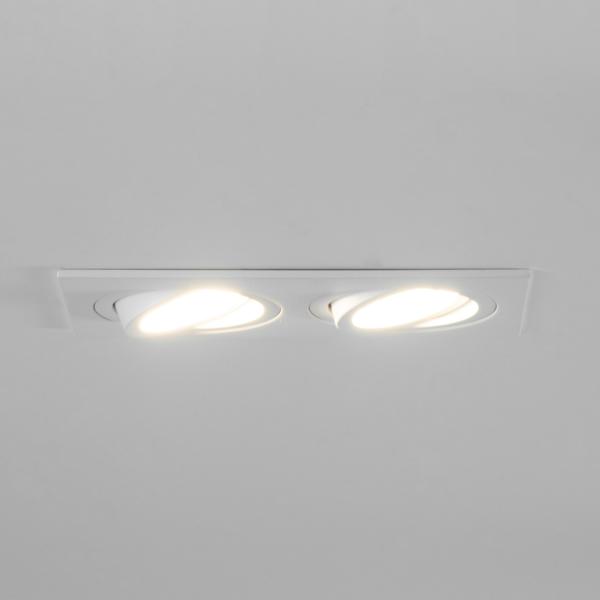 Einbaugehäuse, rechteckig, bündig, 2-fach, mit Modulhalterungen bündig, schwenkbar, ohne LED-Module, strukturweiß, quadratisch. Ausgeführt in kompakter Bauform für werkzeuglose Schnellmontage zum Deckeneinbau. Alle Brumberg MR16-LED-Module sind für die Einbaueinheit M1 bis zur maximal angegebenen Leistung einsetzbar. Die Einbautiefe der Leuchte richtet sich nach den jeweils verwendeten LED-Modulen. Die LED-Module sind im Lieferumfang der Einbaueinheit nicht enthalten. Ausführung: ohne Fassung, Montageart: Einbaumontage, Montageort: Deckenmontage, Material: Aluminium, Schutzart raumseitig: nach DIN EN 60529: IP20, Schutzklasse: (EN 61140) III, Leistung: 13 W, Anzahl der Leuchtmittel / Fassungen: 2 Stück, Verstellbarkeit: schwenkbar, ohne Betriebsgerät, Art der Dimmung: Abhängig vom Betriebsgerät.