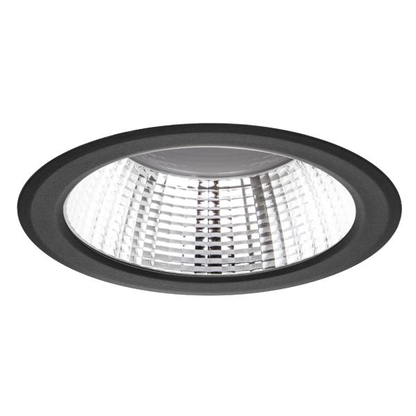 LED-Einbaudownlight, DALI dimmbar, Reflektor silber, facettiert, strukturschwarz, rund. Ausgeführt in kompakter Bauform für werkzeuglose Schnellmontage zum Deckeneinbau. Montageart: Einbaumontage, Montageort: Deckenmontage, Material: Aluminium / Polycarbonat / Stahl, Schutzart raumseitig: nach DIN EN 60529: IP20, Schutzklasse: (EN 61140) II, Spannung: 230V AC 50Hz, Leistung: 23 W, Anzahl der Leuchtmittel / Fassungen: 1 Stück, Lichtstrom: 2.090 lm, Farbtemperatur: 3.000 K, Abstrahlwinkel: 68°, Verstellbarkeit: nicht verstellbar, Mit Betriebsgerät: Ja, Dimmbar: Ja, Art der Dimmung: DALI-2.