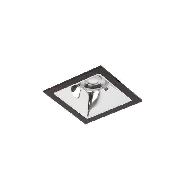 LED-Einbaudownlight, schaltbar, Reflektor silber, hochglänzend, strukturschwarz, quadratisch. Ausgeführt in kompakter Bauform für werkzeuglose Schnellmontage zum Deckeneinbau. Ausführung: ohne Fassung, Montageart: Einbaumontage, Montageort: Deckenmontage, Material: Aluminium / Glas / Kunststoff, Schutzart raumseitig: nach DIN EN 60529: IP20, Schutzklasse: (EN 61140) II, Spannung: 230V AC 50Hz, Leistung: 10,5 W, Anzahl der Leuchtmittel / Fassungen: 1 Stück, Lichtstrom: 1.408 lm, Farbtemperatur: 3.000 K, Lichtfarbe: weiß, Abstrahlwinkel: 55°, Verstellbarkeit: nicht verstellbar, Mit Betriebsgerät: Ja, Art der Dimmung: schaltbar.