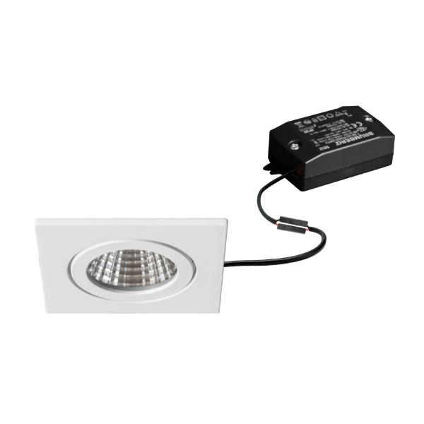 LED-Einbaudownlightset, V4A, IP54, schaltbar, weiß matt, quadratisch. Ausgeführt in kompakter Bauform für werkzeuglose Schnellmontage zum Deckeneinbau. Set inkl. Konverter für 230 V-Netzspannung, schaltbar, Maße Konverter: L 68 x B 35 x H 21 mm Montageart: Einbaumontage, Montageort: Deckenmontage, Material: Edelstahl V4A / Aluminium / Glas / Kunststoff, Schutzart raumseitig: nach DIN EN 60529: IP54, Schutzklasse: (EN 61140) II, Spannung: 230V AC 50Hz, Leistung: 6 W, Anzahl der Leuchtmittel / Fassungen: 1 Stück, Lichtstrom: 730 lm, Farbtemperatur: 3.000 K, Abstrahlwinkel: 38°, Verstellbarkeit: nicht verstellbar, Mit Betriebsgerät: Ja, Dimmbar: Nein, Art der Dimmung: schaltbar.