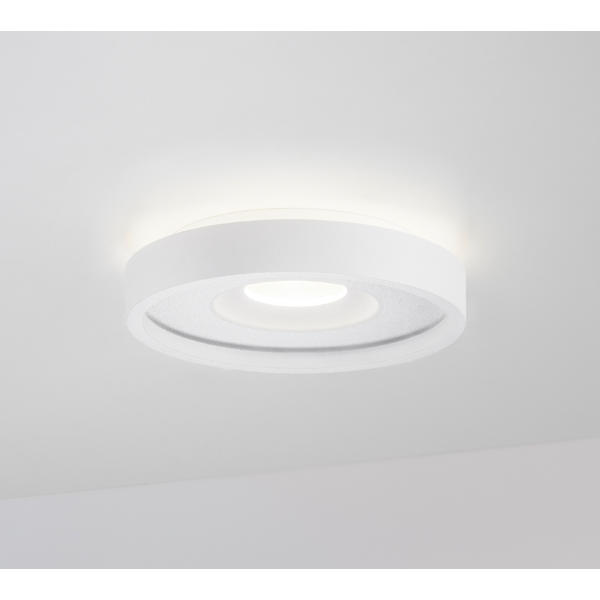 LED-Einbaudownlight, mit Indirektanteil, strukturweiß, rund. Ausgeführt in kompakter Bauform für werkzeuglose Schnellmontage zum Deckeneinbau. LED-Deckeneinbaudownlight mit indirektem Lichtanteil. Lichtstrom direkt 660 lm (9 W), Lichtstrom indirekt 140 lm (2 W). Ausführung: Plug&Play, Montageart: Einbaumontage, Montageort: Deckenmontage, Material: Aluminium / Polycarbonat, Schutzart raumseitig: nach DIN EN 60529: IP20, Schutzklasse: (EN 61140) III, Leistung: 11 W, Anzahl der Leuchtmittel / Fassungen: 1 Stück, Lichtstrom: 800 lm, Farbtemperatur: 3.000 K, Abstrahlwinkel: 57°, Verstellbarkeit: nicht verstellbar, ohne Betriebsgerät, Dimmbar: Abhängig vom Betriebsgerät, Art der Dimmung: Abhängig vom Betriebsgerät.