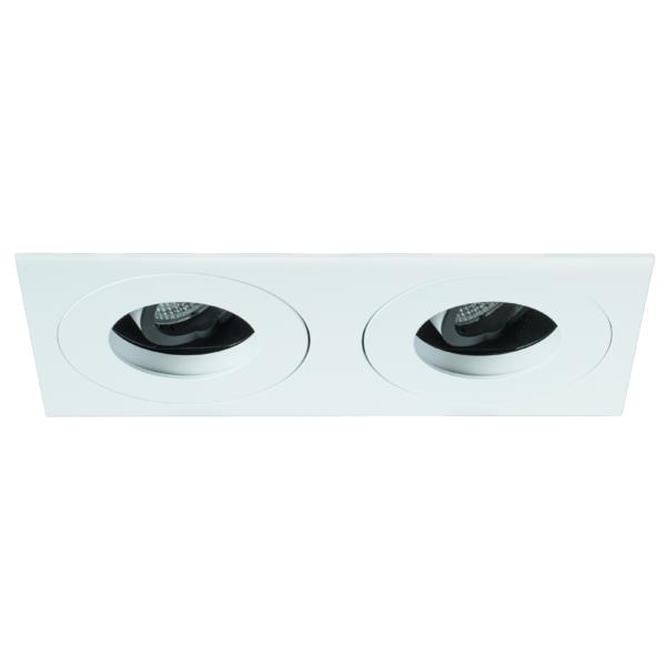 LED-Einbaustrahler, 2-fach, dreh- und schwenkbar, strukturweiß, rechteckig. Ausgeführt in kompakter Bauform für werkzeuglose Schnellmontage zum Deckeneinbau. Montageart: Einbaumontage, Montageort: Deckenmontage, Material: Aluminium / Kunststoff, Schutzart raumseitig: nach DIN EN 60529: IP20, Schutzklasse: (EN 61140) III, Leistung: 24,4 W, Anzahl der Leuchtmittel / Fassungen: 2 Stück, Lichtstrom: 2.600 lm, Farbtemperatur: 3.000 K, Abstrahlwinkel: 29°, Verstellbarkeit: drehbar und schwenkbar, Dimmbar: Abhängig vom Betriebsgerät, Art der Dimmung: Abhängig vom Betriebsgerät.