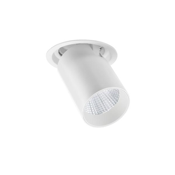 LED-Einbaustrahler, dreh- und schwenkbar, schaltbar, strukturweiß, rund. Ausgeführt in kompakter Bauform für werkzeuglose Schnellmontage zum Deckeneinbau. Ausführung: ohne Fassung, Montageart: Einbaumontage, Montageort: Deckenmontage, Material: Aluminium / Glas / Kunststoff, Schutzart raumseitig: nach DIN EN 60529: IP20, Schutzklasse: (EN 61140) II, Spannung: 230V AC 50Hz, Leistung: 27 W, Anzahl der Leuchtmittel / Fassungen: 1 Stück, Lichtstrom: 3.550 lm, Farbtemperatur: 3.500 K, Lichtfarbe: weiß, Abstrahlwinkel: 30°, Verstellbarkeit: drehbar und schwenkbar, Mit Betriebsgerät: Ja, Art der Dimmung: schaltbar.