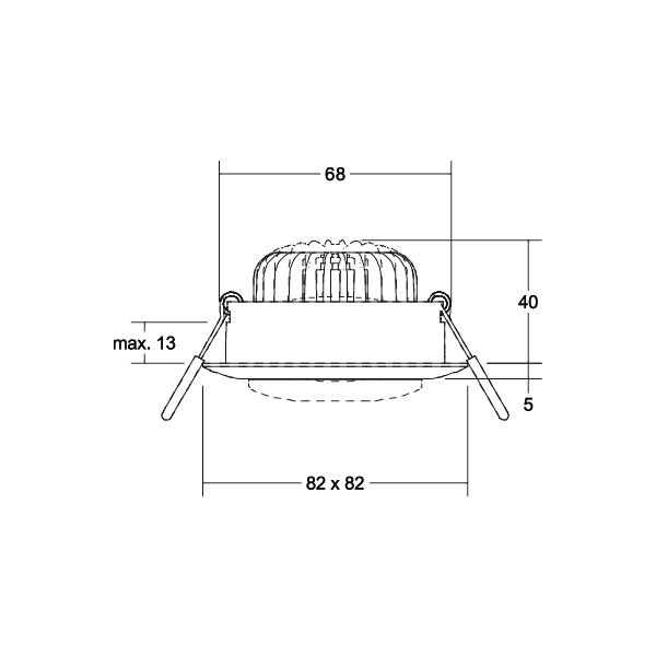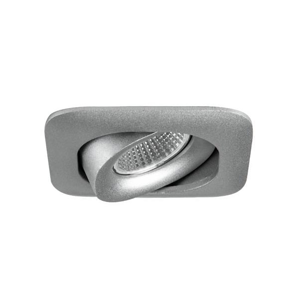 LED-Einbaustrahler, struktursilber, quadratisch. Ausgeführt in kompakter Bauform für werkzeuglose Schnellmontage zum Deckeneinbau. Ausführung: Plug&Play, Montageart: Einbaumontage, Montageort: Deckenmontage, Material: Aluminium / Polycarbonat, Schutzart raumseitig: nach DIN EN 60529: IP20, Schutzklasse: (EN 61140) III, Leistung: 7 W, Anzahl der Leuchtmittel / Fassungen: 1 Stück, Lichtstrom: 600 lm, Farbtemperatur: 3.000 K, Abstrahlwinkel: 40°, Verstellbarkeit: schwenkbar, ohne Betriebsgerät, Dimmbar: Abhängig vom Betriebsgerät, Art der Dimmung: Abhängig vom Betriebsgerät.