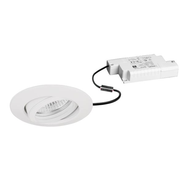 LED-Einbaustrahlerset, dim2warm, Phasenabschnitt dimmbar, strukturweiß, rund. Ausgeführt in kompakter Bauform für werkzeuglose Schnellmontage zum Deckeneinbau. Wird die Leuchte gedimmt, verringert sich die Farbtemperatur. Set inkl. Konverter für 230 V-Netzspannung, Phasenabschnitt dimmbar, Maße Konverter: L 110 x B 50 x H 19 mm Montageart: Einbaumontage, Montageort: Deckenmontage, Material: Guss / Aluminium / Glas / Kunststoff, Schutzart raumseitig: nach DIN EN 60529: IP20, Schutzklasse: (EN 61140) II, Spannung: 230V AC 50Hz, Leistung: 6 W, Anzahl der Leuchtmittel / Fassungen: 1 Stück, Lichtstrom: 460 lm, Farbtemperatur: von 3.000 K bis 1.800 K, Abstrahlwinkel: 38°, Verstellbarkeit: schwenkbar, Mit Betriebsgerät: Ja, Dimmbar: Ja, Art der Dimmung: Phasenabschnitt.