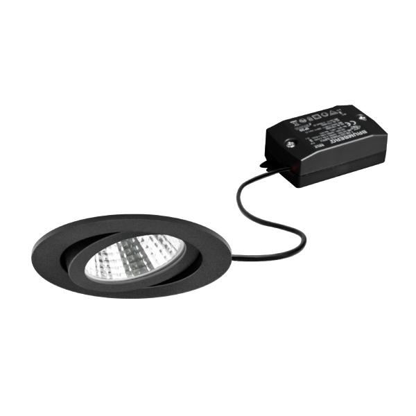 LED-Einbaustrahlerset, schaltbar, strukturschwarz, rund. Ausgeführt in kompakter Bauform für werkzeuglose Schnellmontage zum Deckeneinbau. Set inkl. Konverter für 230 V-Netzspannung, schaltbar, Maße Konverter: L 68 x B 35 x H 21 mm Montageart: Einbaumontage, Montageort: Deckenmontage, Material: Aluminium / Polycarbonat, Schutzart raumseitig: nach DIN EN 60529: IP20, Schutzklasse: (EN 61140) II, Spannung: 230V AC 50Hz, Leistung: 6 W, Anzahl der Leuchtmittel / Fassungen: 1 Stück, Lichtstrom: 630 lm, Farbtemperatur: 3.000 K, Abstrahlwinkel: 38°, Verstellbarkeit: schwenkbar, Mit Betriebsgerät: Ja, Dimmbar: Nein, Art der Dimmung: schaltbar.