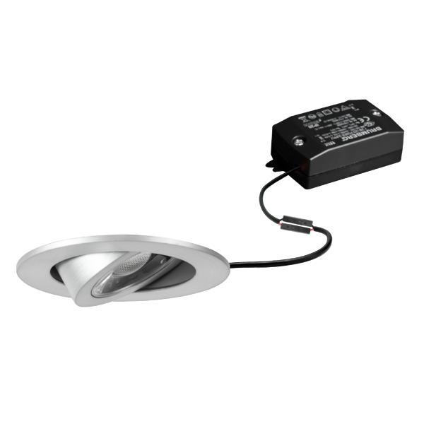 LED-Einbaustrahlerset, mit Linsenoptik, schaltbar, alu matt, rund. Ausgeführt in kompakter Bauform für werkzeuglose Schnellmontage zum Deckeneinbau. Set inkl. Konverter für 230 V-Netzspannung, schaltbar, Maße Konverter: L 68 x B 35 x H 21 mm Ausführung: ohne Fassung, Montageart: Einbaumontage, Montageort: Deckenmontage, Material: Aluminium / Kunststoff, Schutzart raumseitig: nach DIN EN 60529: IP20, Schutzklasse: (EN 61140) II, Spannung: 230V AC 50Hz, Leistung: 6 W, Anzahl der Leuchtmittel / Fassungen: 1 Stück, Lichtstrom: 810 lm, Farbtemperatur: 4.000 K, Abstrahlwinkel: 38°, Verstellbarkeit: schwenkbar, Mit Betriebsgerät: Ja, Dimmbar: Nein, Art der Dimmung: schaltbar.