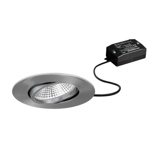 LED-Einbaustrahlerset, IP65, schaltbar, nickel matt, rund. Ausgeführt in kompakter Bauform für werkzeuglose Schnellmontage zum Deckeneinbau. Set inkl. Konverter für 230 V-Netzspannung, schaltbar, Maße Konverter: L 68 x B 35 x H 21 mm Montageart: Einbaumontage, Montageort: Deckenmontage, Material: Aluminium / Silikonkautschuk / PMMA, Schutzart raumseitig: nach DIN EN 60529: IP65, Schutzklasse: (EN 61140) II, Spannung: 230V AC 50Hz, Leistung: 7 W, Anzahl der Leuchtmittel / Fassungen: 1 Stück, Lichtstrom: 620 lm, Farbtemperatur: 3.000 K, Abstrahlwinkel: 36°, Verstellbarkeit: schwenkbar, Mit Betriebsgerät: Ja, Dimmbar: Nein, Art der Dimmung: schaltbar.