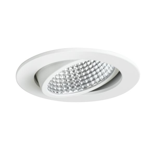 LED-Einbaustrahler, weiß matt, rund. Ausgeführt in kompakter Bauform für werkzeuglose Schnellmontage zum Deckeneinbau. Ausführung: Plug&Play, Montageart: Einbaumontage, Montageort: Deckenmontage, Material: Aluminium / Glas, Schutzart raumseitig: nach DIN EN 60529: IP20, Schutzklasse: (EN 61140) III, Leistung: 12 W, Anzahl der Leuchtmittel / Fassungen: 1 Stück, Lichtstrom: 1.280 lm, Farbtemperatur: 4.000 K, Abstrahlwinkel: 38°, Verstellbarkeit: schwenkbar, ohne Betriebsgerät, Dimmbar: Abhängig vom Betriebsgerät, Art der Dimmung: Abhängig vom Betriebsgerät.