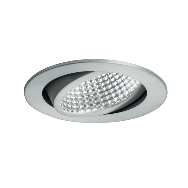 LED-Einbaustrahler, alu matt, rund. Ausgeführt in kompakter Bauform für werkzeuglose Schnellmontage zum Deckeneinbau. Ausführung: Plug&Play, Montageart: Einbaumontage, Montageort: Deckenmontage, Material: Aluminium / Glas, Schutzart raumseitig: nach DIN EN 60529: IP20, Schutzklasse: (EN 61140) III, Leistung: 12 W, Anzahl der Leuchtmittel / Fassungen: 1 Stück, Lichtstrom: 1.280 lm, Farbtemperatur: 4.000 K, Abstrahlwinkel: 38°, Verstellbarkeit: schwenkbar, ohne Betriebsgerät, Dimmbar: Abhängig vom Betriebsgerät, Art der Dimmung: Abhängig vom Betriebsgerät.