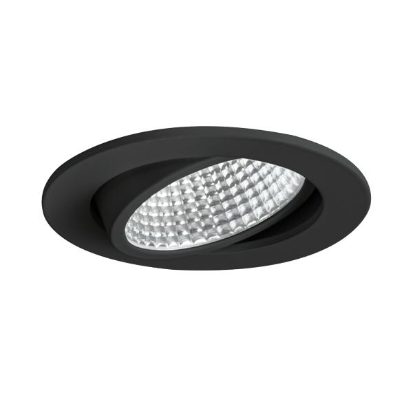 LED-Einbaustrahler, dim2warm, schwarz matt, rund. Ausgeführt in kompakter Bauform für werkzeuglose Schnellmontage zum Deckeneinbau. Wird die Leuchte gedimmt, verringert sich die Farbtemperatur. Montageart: Einbaumontage, Montageort: Deckenmontage, Material: Aluminium / Glas, Schutzart raumseitig: nach DIN EN 60529: IP20, Schutzklasse: (EN 61140) III, Leistung: 12 W, Anzahl der Leuchtmittel / Fassungen: 1 Stück, Lichtstrom: 880 lm, Farbtemperatur: von 3.000 K bis 1.800 K, Abstrahlwinkel: 38°, Verstellbarkeit: schwenkbar, ohne Betriebsgerät, Dimmbar: Abhängig vom Betriebsgerät, Art der Dimmung: Abhängig vom Betriebsgerät.