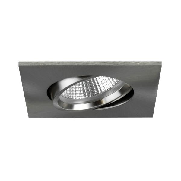LED-Einbaustrahler, nickel matt, quadratisch. Ausgeführt in kompakter Bauform für werkzeuglose Schnellmontage zum Deckeneinbau. Einbaustrahler geeignet zur direkten Montage auf normal entflammbaren Baustoffen. Wärmedämmung zulässig. Ausführung: Plug&Play, Montageart: Einbaumontage, Montageort: Deckenmontage, Material: Aluminium / Stahl / PMMA, Schutzart raumseitig: nach DIN EN 60529: IP20, Schutzklasse: (EN 61140) III, Leistung: 6 W, Anzahl der Leuchtmittel / Fassungen: 1 Stück, Lichtstrom: 540 lm, Farbtemperatur: 3.000 K, Abstrahlwinkel: 36°, Verstellbarkeit: schwenkbar, ohne Betriebsgerät, Dimmbar: Abhängig vom Betriebsgerät, Art der Dimmung: Abhängig vom Betriebsgerät.