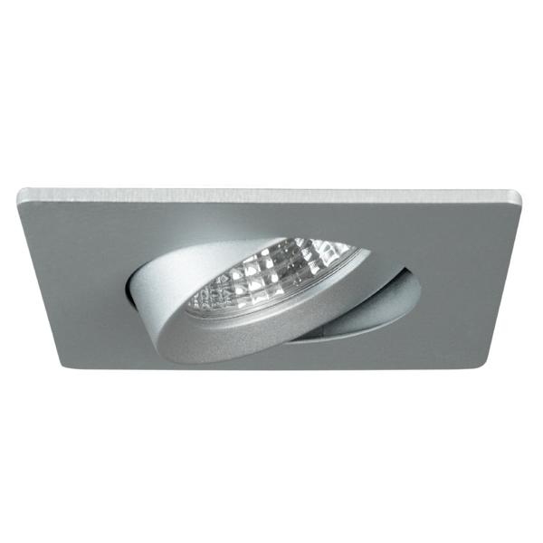 Einbaustrahler, GX5,3, silber matt, quadratisch. Ausgeführt in kompakter Bauform für werkzeuglose Schnellmontage zum Deckeneinbau. Montageart: Einbaumontage, Montageort: Deckenmontage, Material: Aluminium, Schutzart raumseitig: nach DIN EN 60529: IP20, Schutzklasse: (EN 61140) III, Spannung: 12V, Leistung: 50 W, Anzahl der Leuchtmittel / Fassungen: 1 Stück, Verstellbarkeit: schwenkbar, ohne Betriebsgerät, Dimmbar: Abhängig vom Betriebsgerät, Art der Dimmung: Abhängig vom Betriebsgerät.