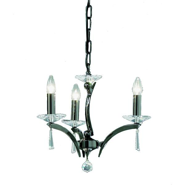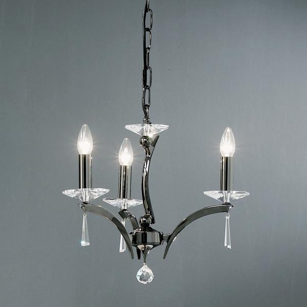 Pendelleuchte schwarzchrom glänzend, mit Kristallen, schwarzchrom glänzend, sonstige. Ausführung in kompakter Bauform für die harmonische Implementierung in stimmige, architektonische Raumkonzepte. Anbau-Pendelleuchte, mit Kristallen. Ausführung: E14, Montageart: Anbaumontage, Montageort: Deckenmontage, Material: Messingguss / Kristall, Schutzart raumseitig: nach DIN EN 60529: IP20, Schutzklasse: (EN 61140) I, Spannung: 230V AC 50Hz, Leistung: 40 W, Anzahl der Leuchtmittel / Fassungen: 3 Stück, ohne Betriebsgerät, Art der Dimmung: sonstige.