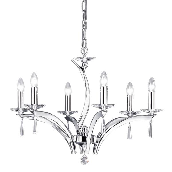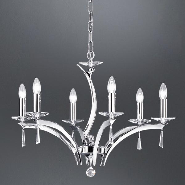 Pendelleuchte chrom glänzend, mit Kristallen, chrom glänzend, sonstige. Ausführung in kompakter Bauform für die harmonische Implementierung in stimmige, architektonische Raumkonzepte. Anbau-Pendelleuchte, mit Kristallen. Ausführung: E14, Montageart: Anbaumontage, Montageort: Deckenmontage, Material: Messingguss / Kristall, Schutzart raumseitig: nach DIN EN 60529: IP20, Schutzklasse: (EN 61140) I, Spannung: 230V AC 50Hz, Leistung: 40 W, Anzahl der Leuchtmittel / Fassungen: 6 Stück, ohne Betriebsgerät, Art der Dimmung: sonstige.