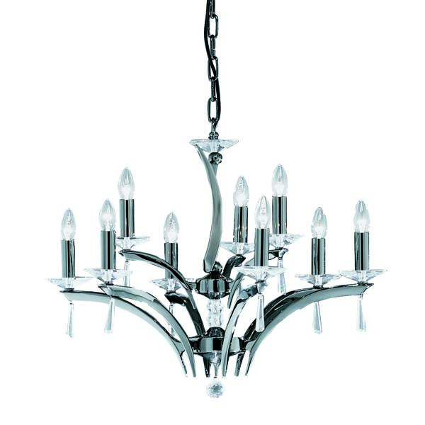 Pendelleuchte schwarzchrom glänzend, mit Kristallen, schwarzchrom glänzend, sonstige. Ausführung in kompakter Bauform für die harmonische Implementierung in stimmige, architektonische Raumkonzepte. Anbau-Pendelleuchte, mit Kristallen. Ausführung: E14, Montageart: Anbaumontage, Montageort: Deckenmontage, Material: Messingguss / Kristall, Schutzart raumseitig: nach DIN EN 60529: IP20, Schutzklasse: (EN 61140) I, Spannung: 230V AC 50Hz, Leistung: 40 W, Anzahl der Leuchtmittel / Fassungen: 9 Stück, ohne Betriebsgerät, Art der Dimmung: sonstige.