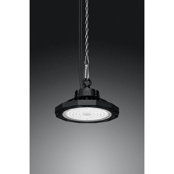 LED-Hallentiefstrahler, DALI-2 dimmbar , schwarz, rund. Pendelmontage, Deckenmontage Highbay-LED-Hallentiefstrahler inkl. Netzgerät für 230 V-Netzspannung, DALI-2 dimmbar Ausführung: ohne Fassung, Montageart: Pendelmontage, Montageort: Deckenmontage, Material: Aluminium / Polycarbonat, Schutzart raumseitig: nach DIN EN 60529: IP65, Schutzklasse: (EN 61140) I, Spannung: 230V AC 50Hz, Leistung: 80 W, Anzahl der Leuchtmittel / Fassungen: 1 Stück, Lichtstrom: 12.100 lm, Farbtemperatur: 4.000 K, Lichtfarbe: weiß, Abstrahlwinkel: 120°, Verstellbarkeit: nicht verstellbar, Mit Betriebsgerät: Ja, Dimmbar: Ja, Art der Dimmung: DALI-2.- Hersteller-Artikelnummer (MPN)