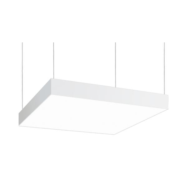LED-Pendel-Flächenleuchte, schaltbar, 600 x 600 mm, strukturweiß, quadratisch. Pendelmontage, Deckenmontage Ausführung: ohne Fassung, Montageart: Pendelmontage, Montageort: Deckenmontage, Material: Aluminium / Stahl / Kunststoff, Schutzart raumseitig: nach DIN EN 60529: IP40, Schutzklasse: (EN 61140) I, Spannung: 230V AC 50Hz, Leistung: 44 W, Anzahl der Leuchtmittel / Fassungen: 1 Stück, Lichtstrom: 5.456 lm, Farbtemperatur: 4.000 K, Lichtfarbe: weiß, Abstrahlwinkel: 114°, Mit Betriebsgerät: Ja, Art der Dimmung: schaltbar.