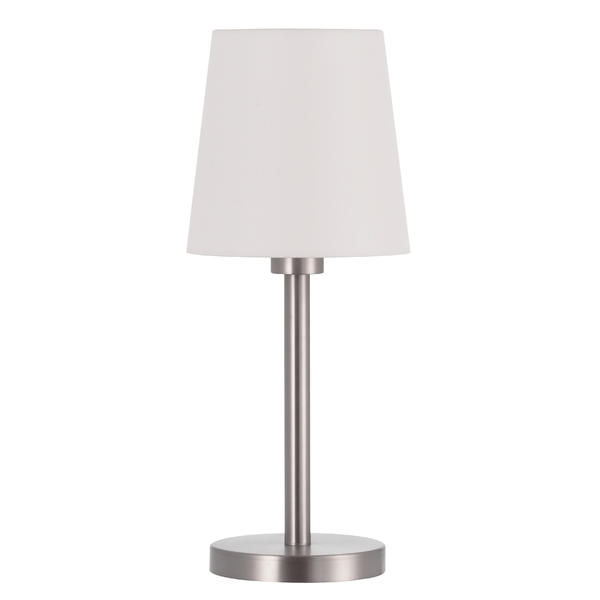 Tischleuchte, für E27-LED-Retrofit-Lampe, mit Stoffschirm, Höhe 420 mm, nickel matt / Schirm rohweiß, rund. Ausführung in kompakter Bauform für die harmonische Implementierung in stimmige, architektonische Raumkonzepte. Tischleuchte mit Stoffschirm, Schirmmaterial: Chintz, Oberfläche: nickel matt, Durchmesser: 170 mm, Höhe: 420 mm, ca. 1.000 mm sichtbare, schwarze Zuleitung mit Schnur zwischen Handschalter und Euroflachstecker. Weitere lieferbare Schirmfarben und Sonderlösungen finden Sie bei jedem Produkt online auf unserer Webseite als PDF. Ausführung: E27, Montageart: Anbaumontage, Montageort: Tischmontage, Schutzart raumseitig: nach DIN EN 60529: IP20, Schutzklasse: (EN 61140) I, Spannung: 230V AC 50Hz, Leistung: 15 W, Anzahl der Leuchtmittel / Fassungen: 1 Stück, ohne Betriebsgerät, Art der Dimmung: sonstige.
