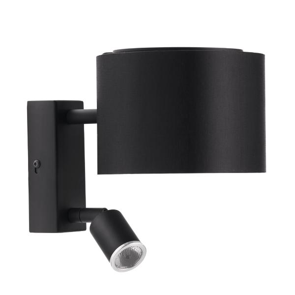 Wandanbauleuchte, für G9-LED-Retrofit-Lampe, mit Stoffschirm, schwarz matt / Schirm schwarz, rund. Ausführung in kompakter Bauform für die harmonische Implementierung in stimmige, architektonische Raumkonzepte. Wandanbauleuchte mit Stoffschirm, Kopf 180° schwenkbar und zusätzlicher flexibel einstellbarer LED-Leseleuchte 3 W (Schalter bauseits). Durchmesser: 140 mm, Höhe: 200 mm, Ausladung: 220 mm, Schirmmaterial: Chintz, Oberfläche: schwarz gepulvert. Weitere lieferbare Schirmfarben und Sonderlösungen finden Sie bei jedem Produkt online auf unserer Webseite als PDF. Ausführung: G9, Montageart: Anbaumontage, Montageort: Wandmontage, Schutzart raumseitig: nach DIN EN 60529: IP20, Schutzklasse: (EN 61140) I, Spannung: 230V AC 50Hz, Leistung: 8 W, Anzahl der Leuchtmittel / Fassungen: 1 Stück, ohne Betriebsgerät, Art der Dimmung: sonstige.- Hersteller-Artikelnummer (MPN)