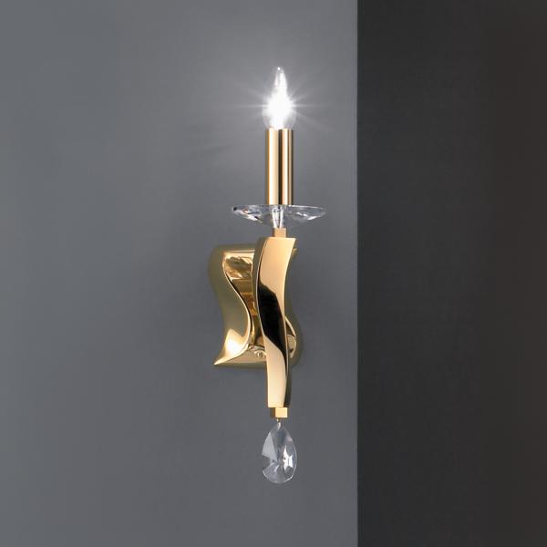 Wandleuchte gold glänzend, mit Kristallen, gold glänzend, sonstige. Ausführung in kompakter Bauform für die harmonische Implementierung in stimmige, architektonische Raumkonzepte. Wandanbauleuchte, mit Kristallen. Ausführung: E14, Montageart: Anbaumontage, Montageort: Wandmontage, Material: Messingguss / Kristall, Schutzart raumseitig: nach DIN EN 60529: IP20, Schutzklasse: (EN 61140) I, Spannung: 230V AC 50Hz, Leistung: 40 W, Anzahl der Leuchtmittel / Fassungen: 1 Stück, ohne Betriebsgerät, Art der Dimmung: sonstige.- Hersteller-Artikelnummer (MPN)