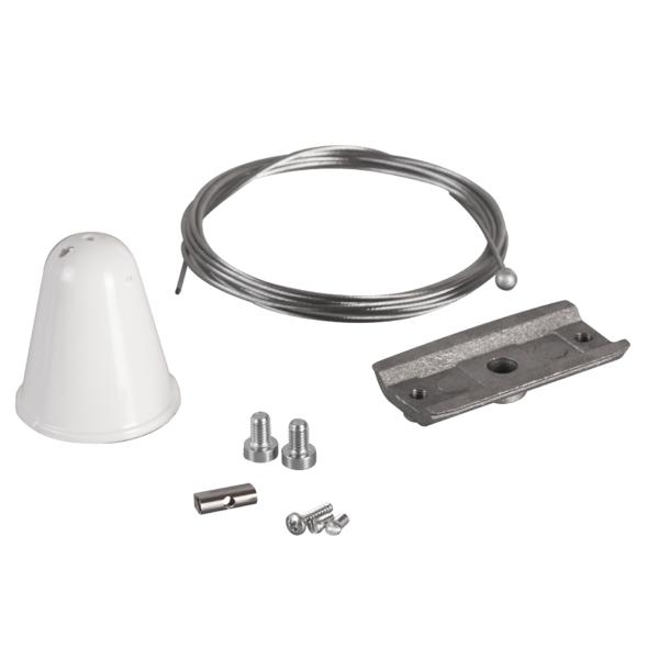 Seilabhängung mit Baldachin zu Stromschiene 88101-88104, Pendellänge 2.000 mm, weiß. Material: Aluminium.