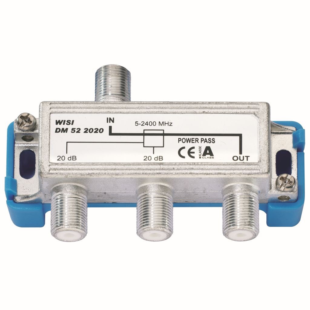 Der DM52 2020 ist ein 2-fach Abzweiger fuer Kabelfernsehen und Satellitenfernsehen. Seine Durchgangsdaempfung betraegt 3,5 dB und seine Abzweigdaempfungen betragen 20 dB. Der integrierte DC-Bypass ermoeglicht das Durchleiten von Versorgungsspannungen zu aktiven Komponenten. Hohe Schirmungseigenschaften (Klasse A) gewaehrleisten eine stoerungsfreie Uebertragung der Signale. Durch F-Buchsen ist ein schneller sicherer Anschluss gewaehrleistet.