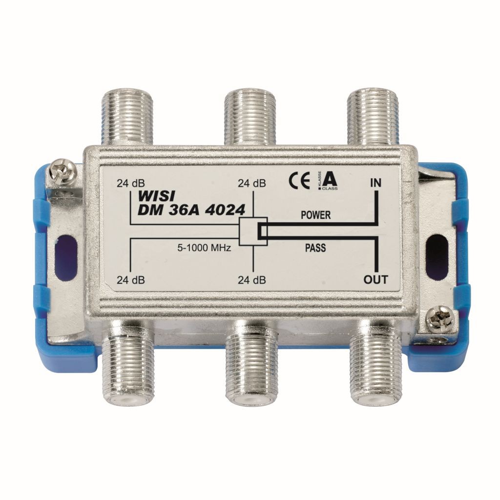 Der DM36A 4024 ist ein 4-fach Abzweiger fuer Kabelfernsehen. Seine Durchgangsdaempfung betraegt 0,8 dB und seine Abzweigdaempfung auf allen 4 Abzweigungen betraegt 24 dB. Hohe Schirmungseigenschaften (Klasse A) gewaehrleisten eine stoerungsfreie Uebertragung der Signale. Durch F-Buchsen ist ein schneller sicherer Anschluss gewaehrleistet.