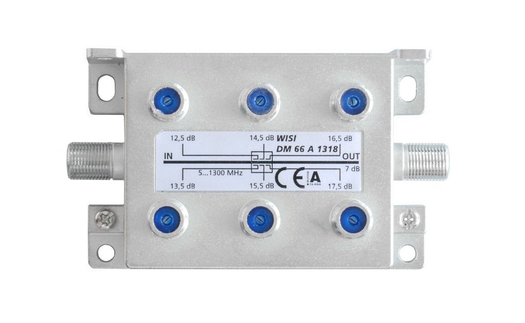 Der DM66A 1318 ist ein asymmetrischer 6-fach Abzweiger mit einer Abzweigdaempfung von 13 dB bis zu 18 dB fuer die Anwendung in Verteilsystemen mit einer Stammleitung. Mit einem Frequenzbereich bis 1,3 GHz ist der Abzweiger bestens fuer DOCSIS 3.1 Anwendungen geeignet. Das weissbronze-beschichtete Gehaeuse ermoeglicht sehr hohe Schirmungseigenschaften der Klasse A (+10 dB) und gewaehrleistet eine stoerungsfreie Uebertragung der Signale im Empfangs und Verteilsystem. Aufgrund der stetig steigenden multimedialen Inhalte ist eine hohe Intermodulationsfestigkeit sehr wichtig, der Abzweiger DM66A 1318 erfuellt hierfuer die Anforderungen gemaess EN 60728-4.