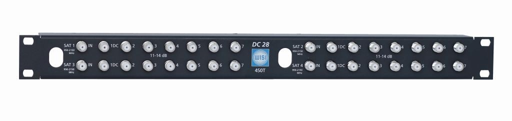 Ein DC28 4S0T ist ein 19...-Eingangsverteiler fuer Kanalaufbereitungssysteme fuer 4x 7 Sat-Ausgaenge. Er besitzt ueber einen DC-Bypass fuer die LNB-Speisung.