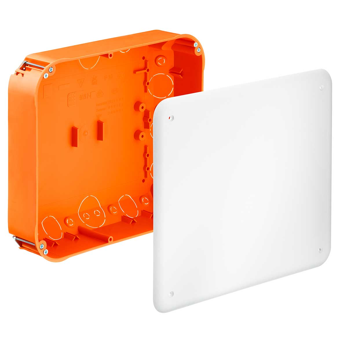 Verbindungskasten 235 x 205 x 72 mm (9197-91). Verbindungskästen in allen Größen und für fast alle Aufgaben. Dieses Programm zeichnet sich durch seine praxisnahen Gehäusegrößen sowie die baustellengerechte, robuste Bauart der Gehäuse aus. Installationsart: Basis-Installation | Anwendungsgebiet: Für Leitungsverbindungen | Tiefe: 72 mm | Fräsloch Ø: 4 x 68 mm | Länge: 235 mm | Breite: 205 mm