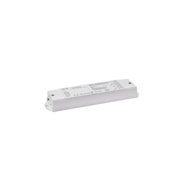 Funksystem-Controller für 1-4 Kanal-Betrieb, weiß. Funksystem-Controller universell zur Ansteuerung von 1-4-Kanal-LED-Modulen. Mögliche Ansteuerungsvarianten: Weißlicht, TunableWhite, RGB, RGBW Kompatibel zu: Fernbedienung Weißlicht: 18199000, 18202000, Fernbedienung TunableWhite: 18198000, 18201000, Fernbedienung RGB: 18197000, 18200000, Fernbedienung RGBW: 18196000, 18194070 bzw. 18194080. Weitere Funktionen zu den oben genannten Komponenten entnehmen Sie bitte der jeweiligen Produktbeschreibung. Funk-Master-Controller 18192000: Spannung: 12-24 V DC, Strom: max. 4 x 2,5 A, 3 x 3,3 A, 2 x 5,0 A, 1x 5,0 A, Leistung: max. 120 W / 240 W (12 V DC / 24 V DC), Ansteuerung: negativ (gemeinsame Anode), Steuersignal: PWM, Funkfrequenz: 869,5 MHz, Reichweite (Sichtverbindung): bis zu 20 m, Maße: L 160 x B 45 x H 18 mm, Material: Kunststoff, Lieferung: inkl. Zugentlastung, Controller pro Fernbedienung: max. 4 (bei optimaler Funkverbindung) Controller zur Systemerweiterung: 18195000 (kabelgebunden): Spannung: 12-24 V DC, Strom: max. 4 x 2,5 A, 3 x 3,3 A, 2 x 5,0 A, 1x 5,0 A, Leistung: max. 120 W / 240 W (12 V DC / 24 V DC), Ansteuerung: negativ (gemeinsame Anode), Steuersignal: PWM, Maße: L 160 x B 45 x H 18 mm, Material: Kunststoff, Lieferung: inkl. Zugentlastung Schutzart raumseitig: nach DIN EN 60529: IP20, Schutzklasse: (EN 61140) III, Leistung: 240 W, Art der Dimmung: sonstige.