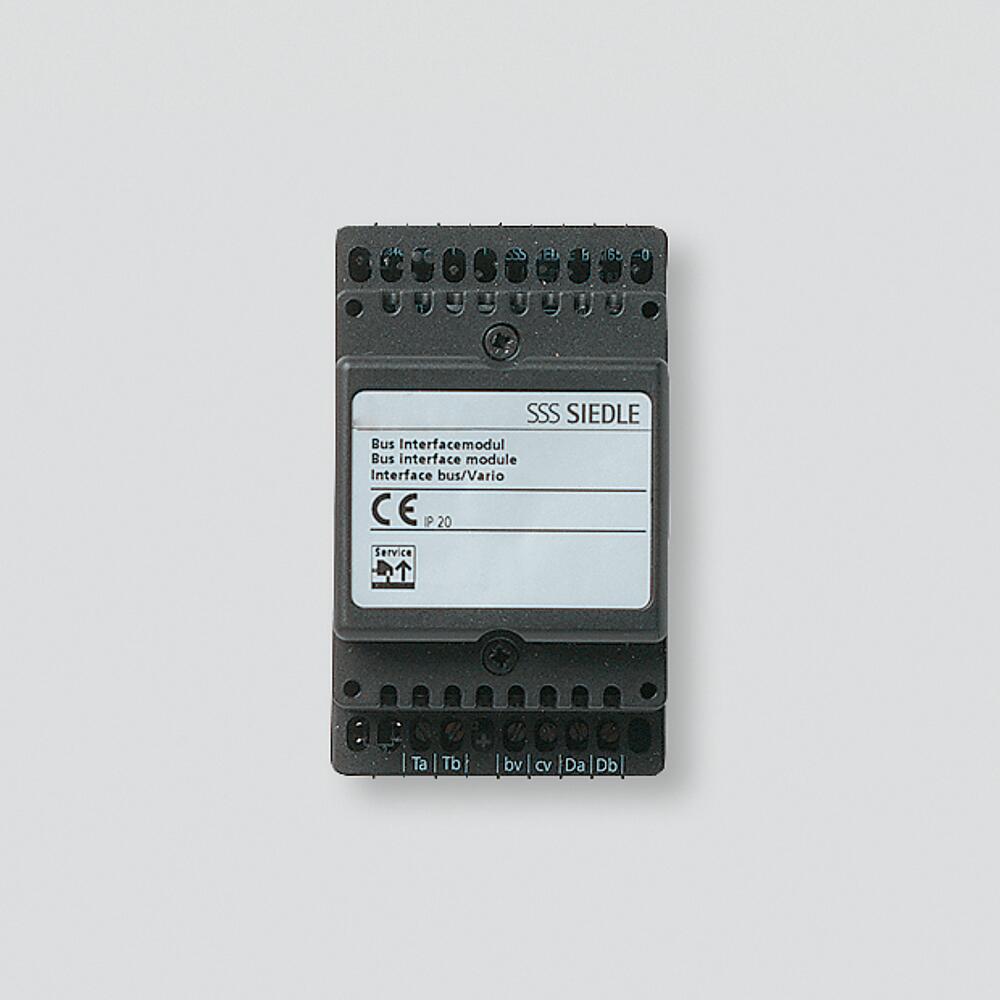 Bus-Interface-Modul im Schalttafelgehäuse, für die Anbindung von Siedle Touch ST , Codeschloss-Modul COM 611- oder Display-Ruf-Modul DRM 611- sowie DRM 612- über den Siedle Vario-Bus an den Siedle In-Home-Bus, zum Auslösen von Türrufen.