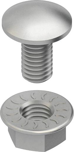 Flachrundschraube ähnlich DIN 603, mit verzahnter Flanschmutter nach DIN EN 1661. Abmessungen (ca. Maße) Gewinde : M 6 Länge : 20 mm Werkstoff : Stahl, galvanisch verzinkt nach DIN EN ISO 19598/4042, dickschichtpassiviert