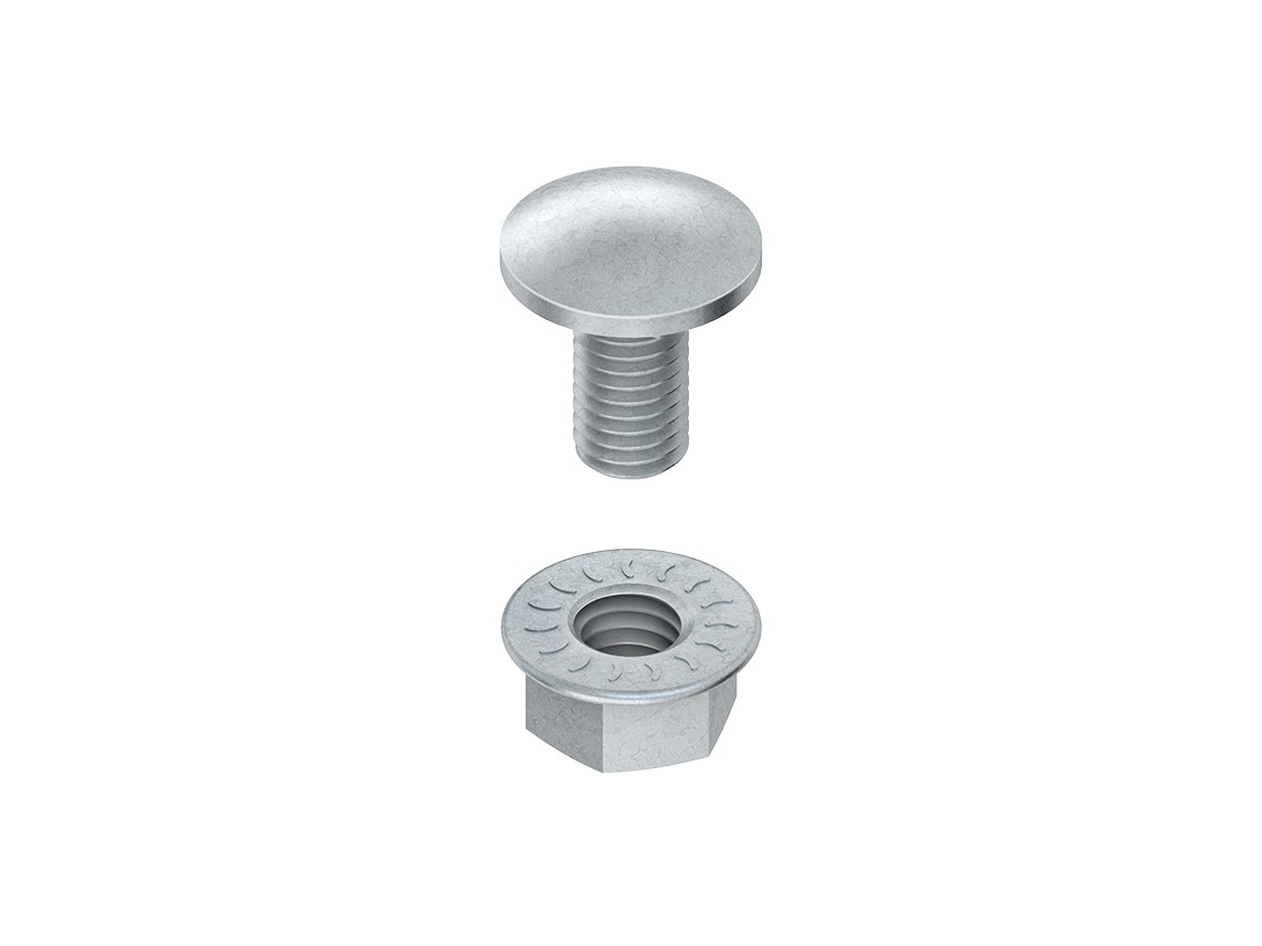 Flachrundschraube ähnlich DIN 603, inklusive verzahnter Flanschmutter nach DIN EN 1661. Zur Verwendung im Funktionserhalt bzw. für Unterdecken mit brandschutztechnischen Anforderungen (Muster-Leitungsanlagen-Richtlinie MLAR 2/2015) bitte Zusatzvorschriften beachten! Abmessungen (ca. Maße) Gewinde : M 6 Länge L : 16 mm Festigkeitsklasse : 4.8 Werkstoff : Stahl, tauchfeuerverzinkt nach DIN EN ISO 1461