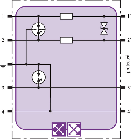 Platzsparendes Kombiableiter-Modul mit LifeCheck zum Schutz von 1 Doppelader erdpotentialfreier symmetrischer Schnittstellen, wahlweise direkte oder indirekte Schirmerdung. LifeCheck erkennt thermische oder elektrische Überlastzustände nach denen der Ableiter auszutauschen ist. Die Anzeige erfolgt berührungslos mittels DEHNrecord LC / SCM / MCM.