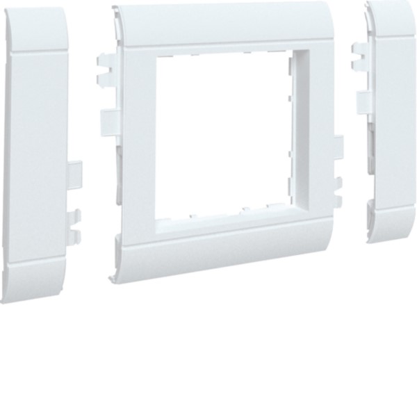 Rahmenblende 50 modular OT 80, halogenfrei in Verkehrsweiß, für Brüstungskanal. Modular anreihbar, 71 mm Kombinationsabstand. Geeignet für Zentralscheiben und Wippen mit 50 x 50 mm. Optimiert für reduzierte Schmutzablagerungen und einfache Reinigung. Kompatibel mit Gerätedosen für Brüstungskanäle, ermöglicht bündigen Abschluss.