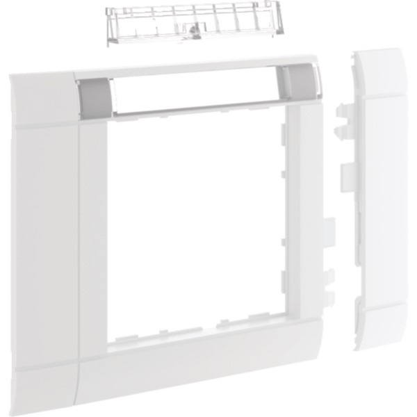 Rahmenblende 55 modular OT 80, halogenfrei, verkehrsweiß, für Brüstungskanal. Anreihbar, 71 mm Kombinationsabstand, für Zentralscheiben 55 x 55 mm. Integriertes Beschriftungsfeld, kompatibel mit 9 mm Beschriftungsbändern. Reduziert Schmutzablagerungen, vereinfacht die Reinigung. Kombinierbar mit Steckdosenblende.
