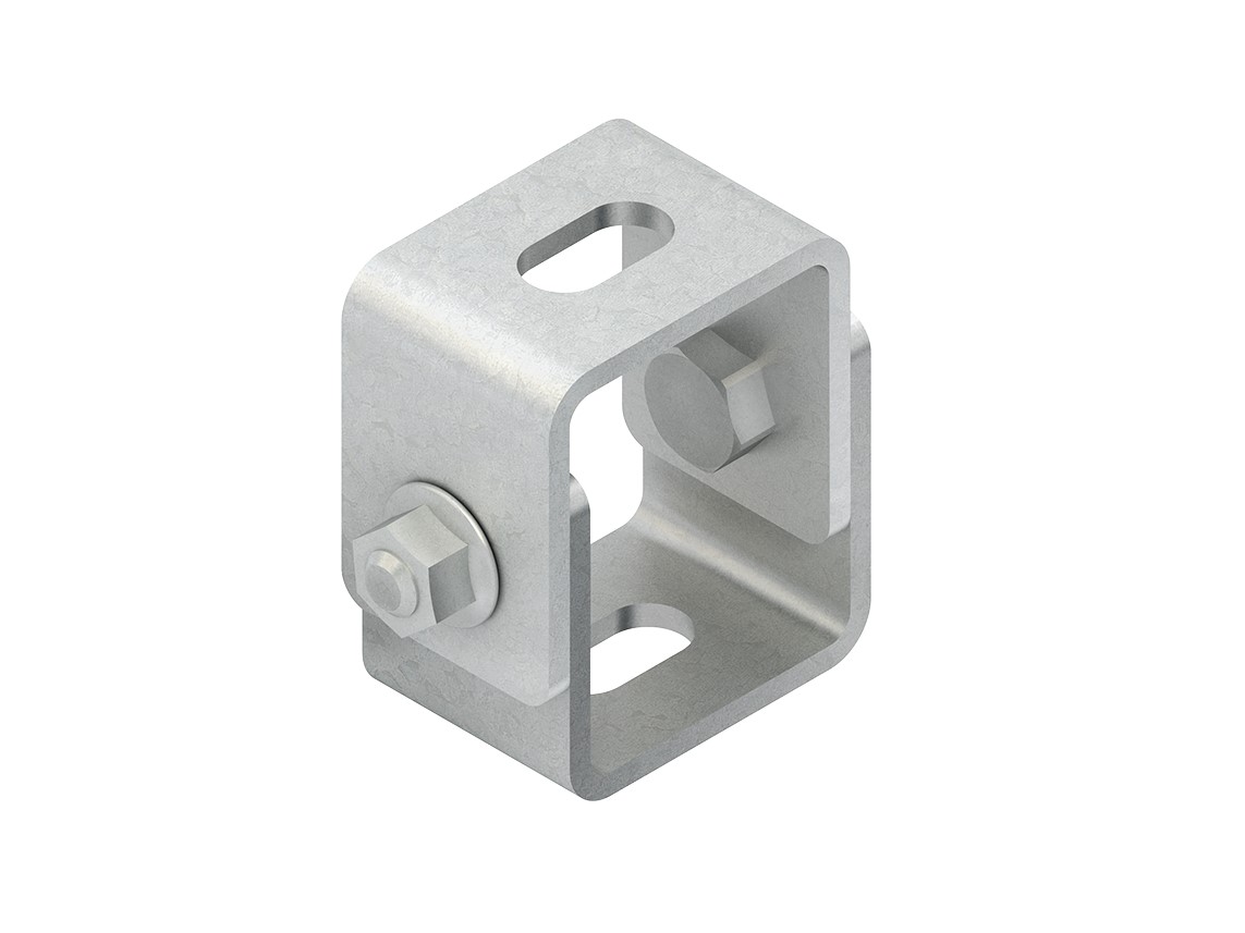 Deckenbügel, mit Gelenk, zur Befestigung von Ketten und Gewindestäben M 12/... an schrägen Betondecken. Die Tragfähigkeitsangaben gelten nur bei ausreichender Verankerung mit dem tragenden Untergrund. Zur Verwendung im Funktionserhalt bitte Zusatzvorschriften beachten! Abmessungen (ca. Maße) H x B x L : 73 x 40 x 62 mm Befestigungslochung : 13 x 25 mm Tragfähigkeit F : 2,5 kN Werkstoff : Stahl, tauchfeuerverzinkt nach DIN EN ISO 1461