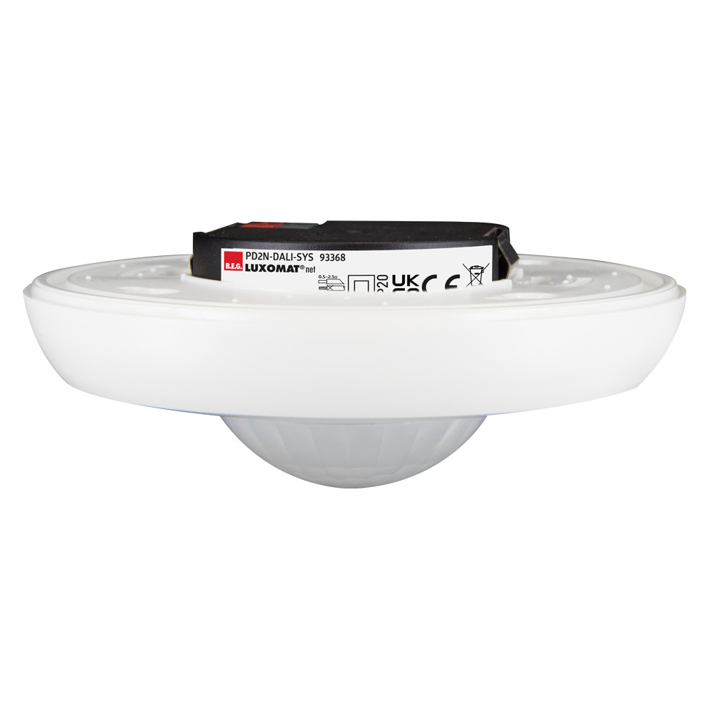DALI-Multisensor, Versorgungsspannung über DALI-Bus, Nahtlose Integration in das skalierbare B.E.G. LUXOMAT(R)net DALI-SYS, Separate und leistungsstarke Lokalisierungs-LED für eine schnelle und sichere Inbetriebnahme, Master-Slave-Betrieb zur Erweiterung des Erfassungsbereiches, Mischlichtmessung mittels innen- und außenliegendem Lichtsensor, Halbautomatik-, Vollautomatik- oder Dämmerungsschalterbetrieb, Umgebungslichtabhängige Regelung oder Schaltausgang, Guided Light, Soft-Start PLUS, Orientierungslicht PLUS, Werksprogramm für einfache Installationsprüfung, Voller Funktionsumfang ist nur mit Zubehör aus B.E.G. LUXOMAT(R)net DALI-SYS-Produktsortiment aktivierbar, Bei diesem Artikel handelt es sich um eine Komponente eines Lichtsteuerungssystems von B.E.G., welches den Einsatz von DALI-Betriebsgeräten (Leuchten, Relais) anderer Hersteller unterstützt, Der Einsatz von DALI-Applikations-Controller anderer Hersteller wird nicht unterstützt, Der Einsatz von DALI-Eingabegeräten (Sensoren, Taster) anderer Hersteller wird nicht unterstützt, Es sind zusätzliche Systemkomponenten (Hardware) von B.E.G. erforderlich, Es sind zusätzliche Dienstleistungen (Planung, Inbetriebnahme und Wartung) von B.E.G. erforderlich