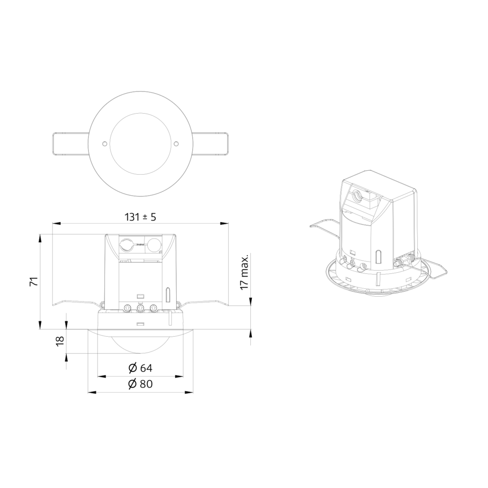 Präsenzmelder mit einer Betriebsspannung von 12-48 V, Zwei potentialfreie Kanäle, Kann sowohl als Master-Gerät als auch als Slave-Gerät genutzt werden, Manuelles Schalten über Taster möglich, Weitere Funktionen über optionale Fernbedienung einstellbar, Weitere Schaltbilder siehe Produktseite auf www.beg-luxomat.com, Werkseinstellung 10 min und 500 Lux (15 min HKL)