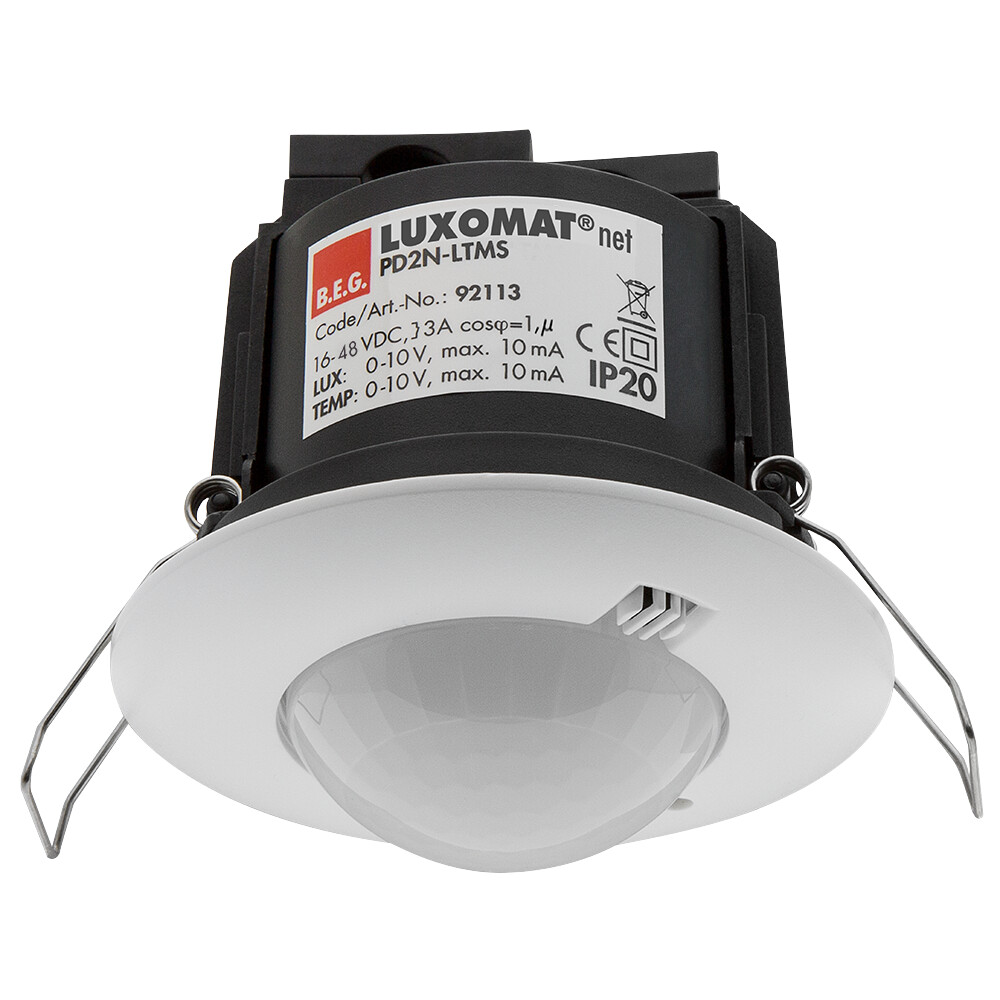 Multisensor zur Erfassung von Präsenz, Temperatur- und Helligkeitswerten, Zur Integration in ein proprietäres Bussystem, Ausgabe des aktuellen Licht- und Temperaturwertes als Analogspannung, Ausgabe der Bewegungserkennung über Schaltkontakt, Feineinstellung des Ausgangswertes für die Lichtmessung und Temperatur über Potentiometer am Gerät