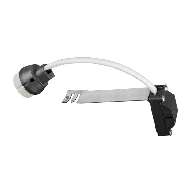 Bügel mit Fassung GU10, mit Zugentlastung. Zur Federbefestigung mit 2-poliger Steckklemme 2 x 2,5 mm² und Zugentlastung. Ausführung: GU10, Material: Stahl / Kunststoff / Keramik, Schutzart raumseitig: nach DIN EN 60529: IP20, Schutzklasse: (EN 61140) II, Spannung: 230V AC 50Hz, ohne Betriebsgerät, Art der Dimmung: sonstige.