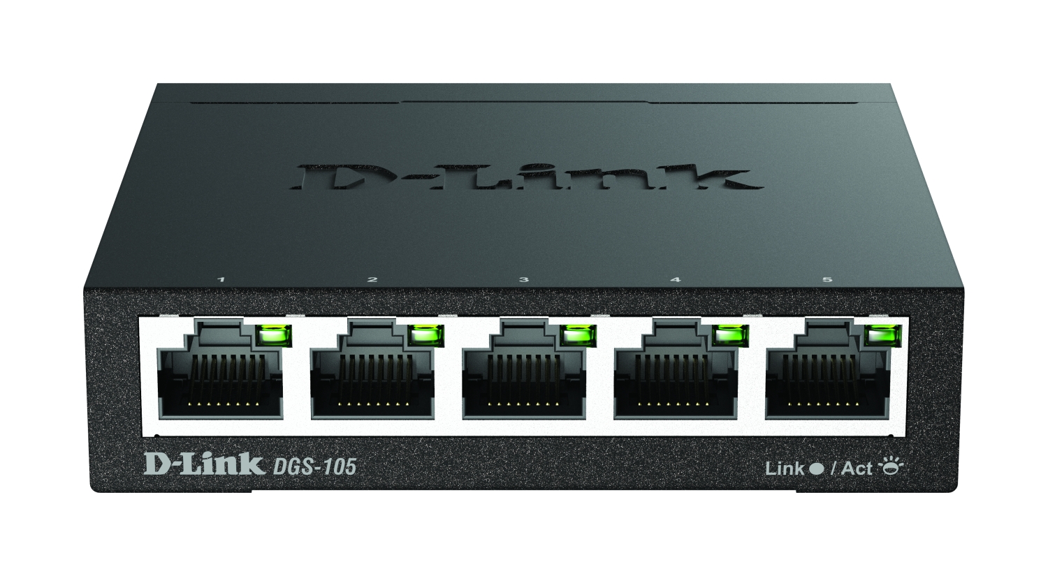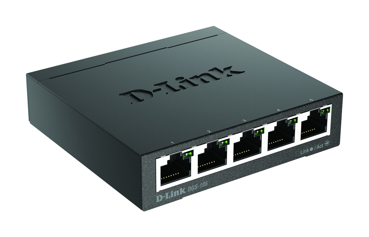 Mit dem 5-Port-Gigabit-Switch DGS-105 profiteren Klein- und Heimbüros sowie kleine und mittlere Unternehmen auf ökonomische Weise von der höheren Bandbreite, die Gigabit-Ethernet bietet. Der Switch bietet fünf bzw. acht Gigabit-Ports, welche die einfache Erweiterung des Netzwerks gestatten und eine schnelle Lösung für ein Upgrade des Netzwerks auf den Gigabit-Standard bieten. Anzahl/Art der Ports: 5 x 10/100/1000BaseT SFP/SFP+ Anschlüsse: Nein / Nein 10G Anschlüsse: Nein Management Level: Unmanaged PoE Ports/PoE Power Budget: Nein/Nein OSI Level / Stackable / IGMP: Layer 2 / Nein / Ja Lüfter: Nein Gehäuseform/-material: Desktop / Metall