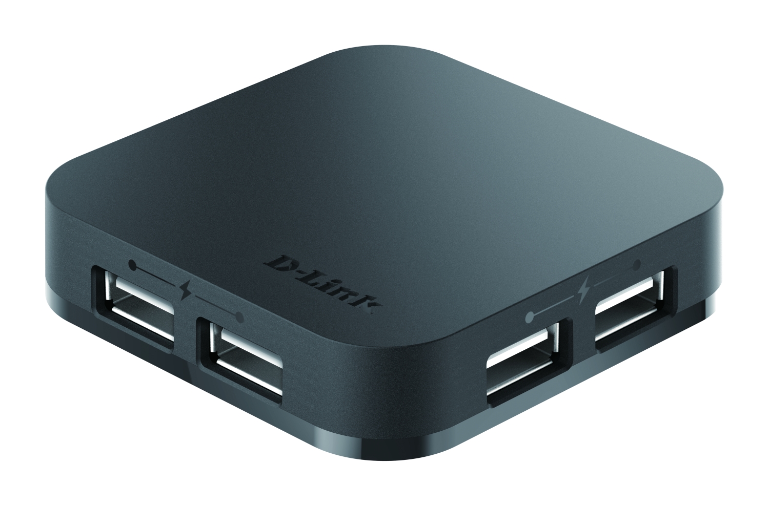 Der D-Link 4-Port USB 2.0 Hub DUB-H4 erweitert Ihren Computer einfach um 4 zusätzliche USB-Ports an die Sie externe Datenträger, Digitalkameras, Drucker und andere Peripheriegeräte anschließen können. Alle Typ-A Ports haben auch die Schnellladefunktion zum Aufladen der Akkus von Mobilgeräten. USB-Bandbreite: 480Mbit/s USB-Standard: USB 2.0, OHCI, UHCI, EHCI, 1.1 Anzahl/Art der Ports: 4x USB Typ A Buchsen (Downstream), 1x USB Typ B Buchse (Upstream) Ladefunktionen: max. 500mA pro Port (Standard-Mode ohne Netzteil), Schnelllade-Modus max. 2.4A pro Port für iPhone/iPad, max. 1.5A pro Port für BC 1.2 kompatible Geräte, max. 4 Geräte gleichzeitig und max. 2.4A gesamt (12W, nur mit angeschlossenem ext. Netzteil) Spannungsversorgung: externes universales Steckernetzteil EURO, 5V/2.5A im Lieferumfang Erweiterungsregeln: max. 5m Kabellänge zwischen HUBs, max. 127 angeschlossene Geräte, max 5 HUBs hintereinander PC-Schnittstelle & Betriebssystem: USB 2.0 Buchse über 1,8m USB 2.0 A-zu-B Anschlusskabel (im Lieferumfang), Windows 10/8/7/Vista/XP, Mac OS X 10.3 oder höher, Linux mit USB-Unterstützung (- Treiber nötig) Design: Tischgehäuse, schwarz