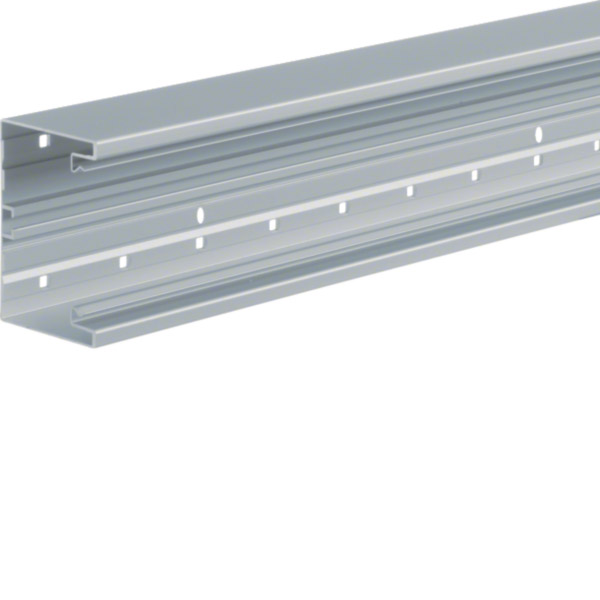 Brüstungskanal-Unterteil frontrast BRA 68x100mm OT 80mm aus Alu natureloxiert.Kanaltunterteil zum Elektro-Installationskanal-System Brüstungskanal aus Aluminium nach DIN EN 50085-1 als Geräteeinbaukanal. Mit Bodenlochung zur direkten Wandmontage und zusätzlicher Rechtecklochung zur werkzeuglosen Befestigung des Kanals mittels Clip-Technik auf Konsolen. Mit C-Profil zur Befestigung von Geräten, Geräteeinbaudosen mit Schnellbefestigung und Trennwänden. Bei Oberteilbreite 80 mm zusätzlich frontrastender Geräteeinbau für werkzeuglose Montage möglich. Kupplungen zum Potenzialausgleich sowie zur einfachen und passgenauen Kanalverbindung, Trennwände und Leitungsrückhalteklammern als Zubehör erhältlich. Hinweis: Potenzialausgleichs-, Erdungs-, Schall- und Brandschutz-Maßnahmen sind fachgerecht auszuführen.